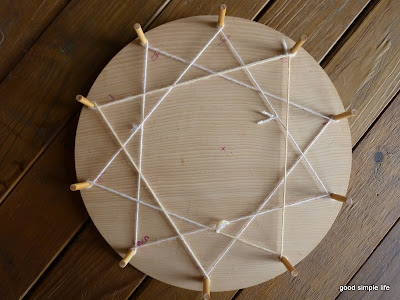 我自己做了一個,先用薄木板裁出一個圓型,然後用圓規尺每隔36度畫出一條半徑,一共劃出十條半徑線,然後在圓邊上半徑線上釘上一個螺絲釘,一共有十個螺絲釘,這就成了。